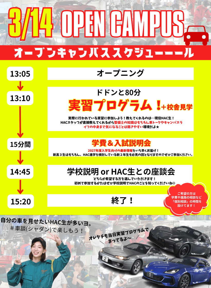 【大学進学・就職検討者はご覧ください】資格取得により「整備業」「車に触れる仕事」の夢が近づきます!