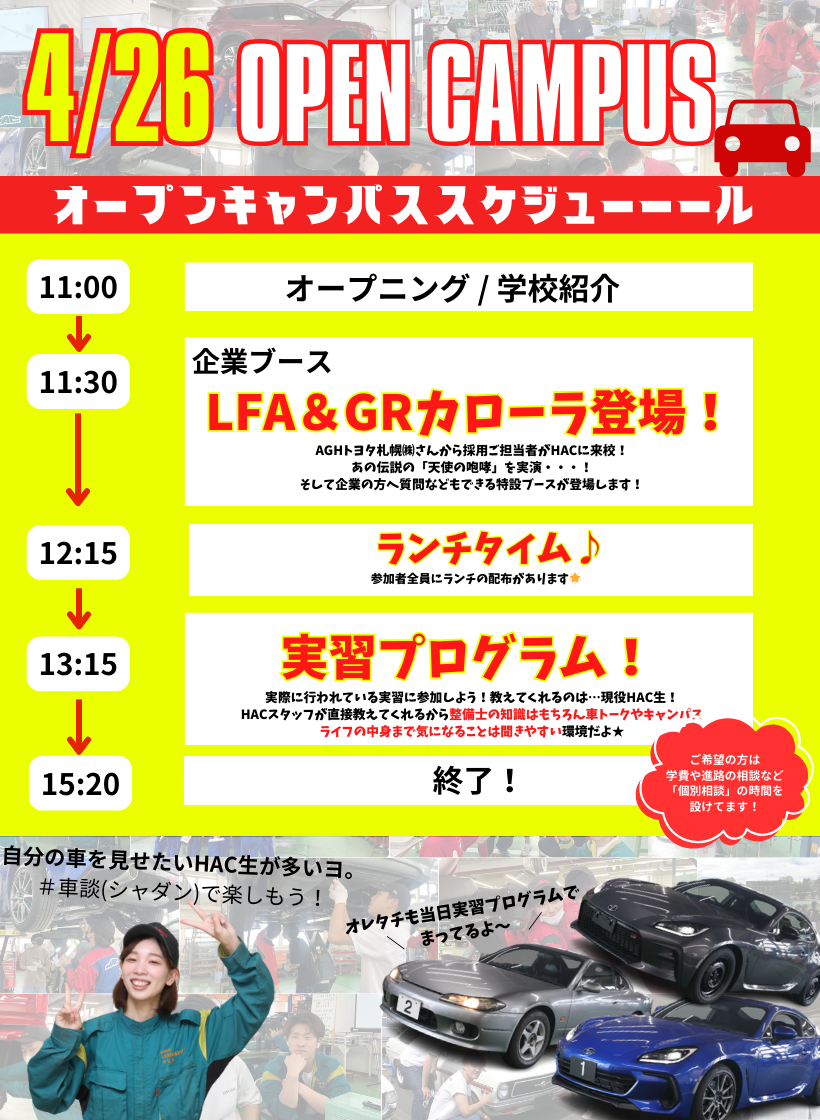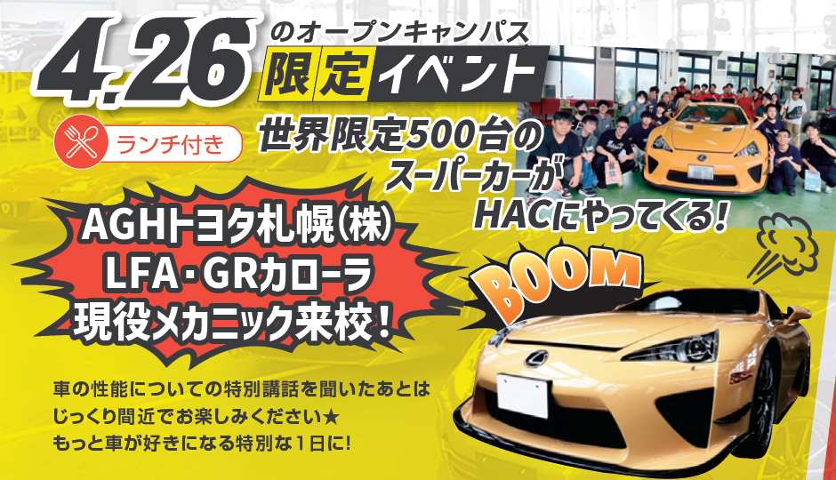 4/26(土)ランチ付きオープンキャンパス開催のご案内🌈~×AGHトヨタ札幌㈱様コラボ~