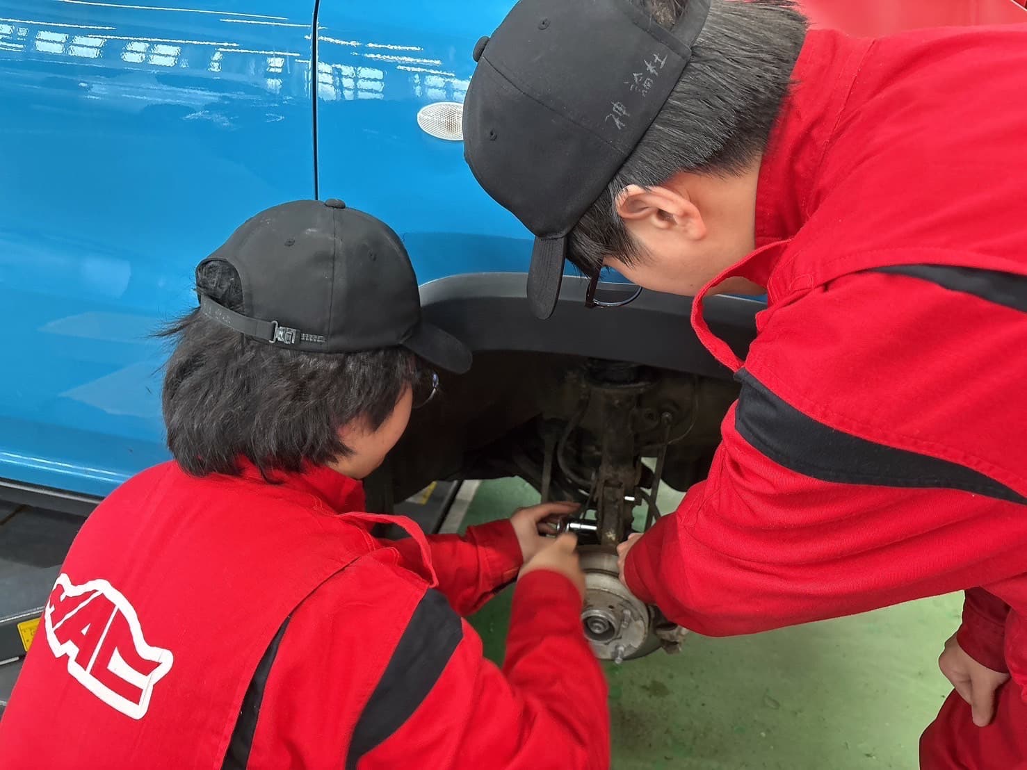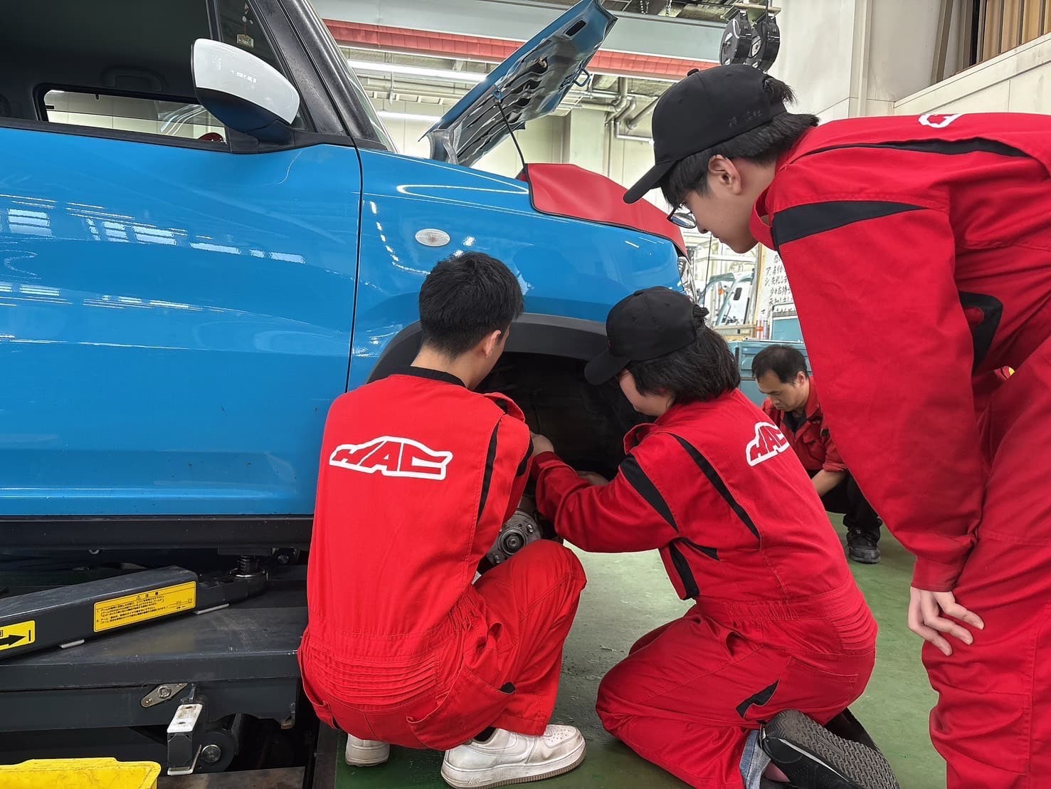 マイカー整備では、学校の実習場と工具を使用して先生と一緒に行うので安心・安全に