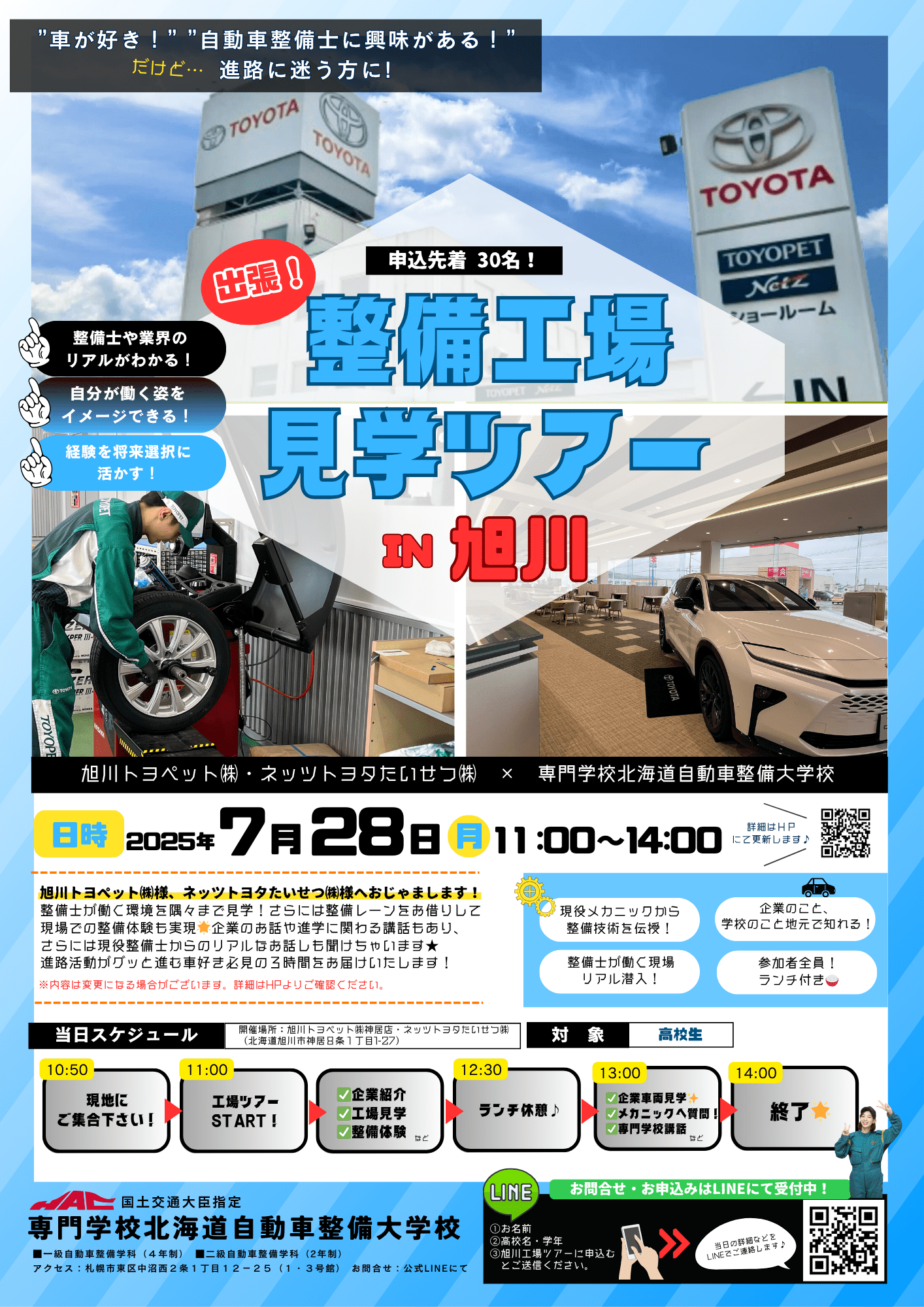 旭川トヨペット㈱様、ネッツトヨタたいせつ㈱様神居店の整備工場の見学ツアーを開催いたします★