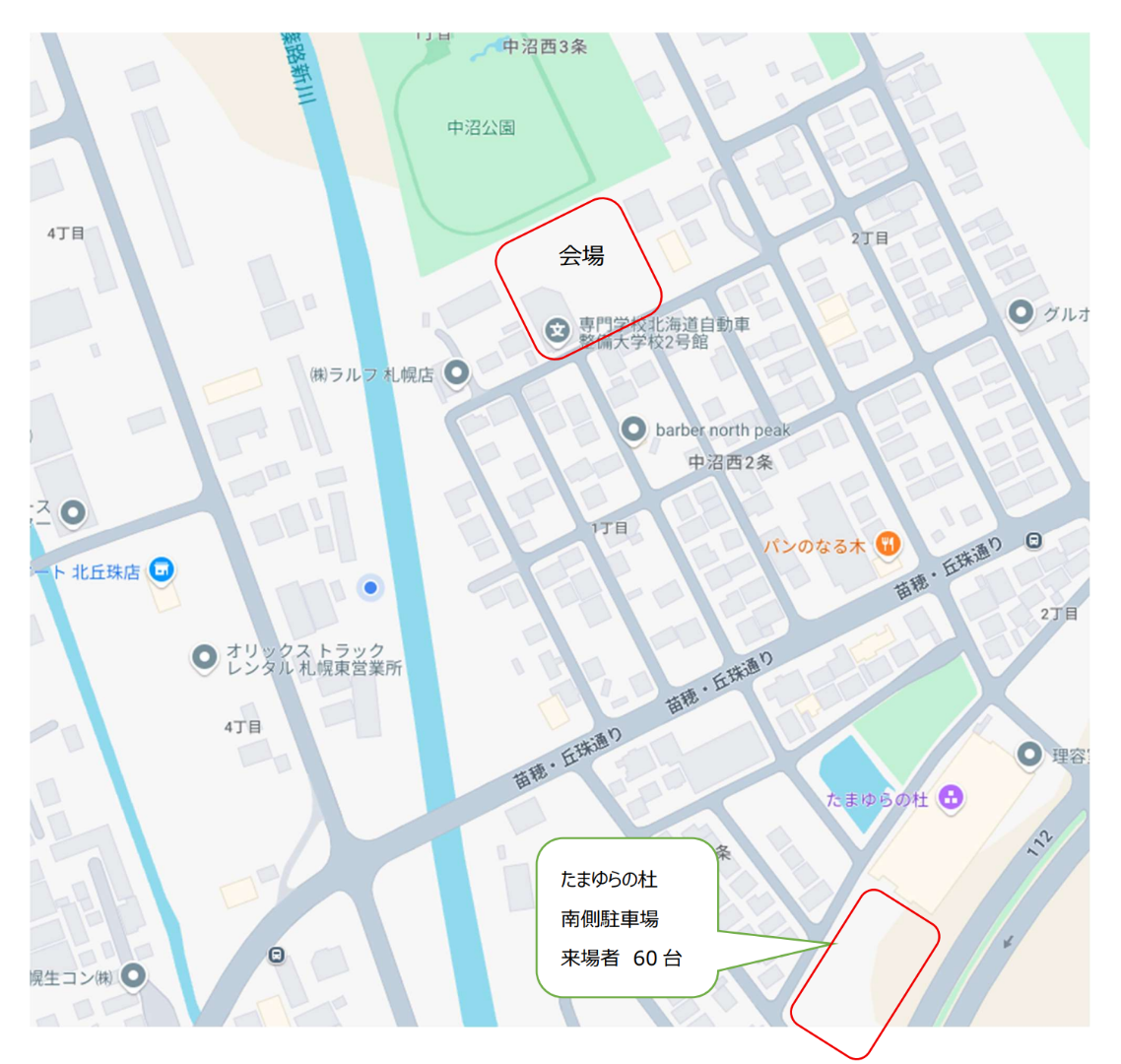 モエレ天然温泉たまゆらの杜 南側臨時駐車場をご利用ください。