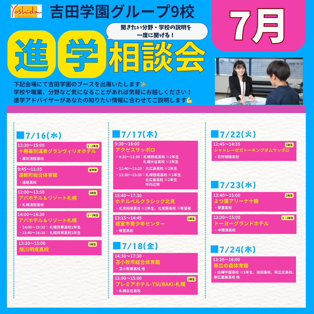 進学相談会に吉田学園の進学アドバイザーが伺います!