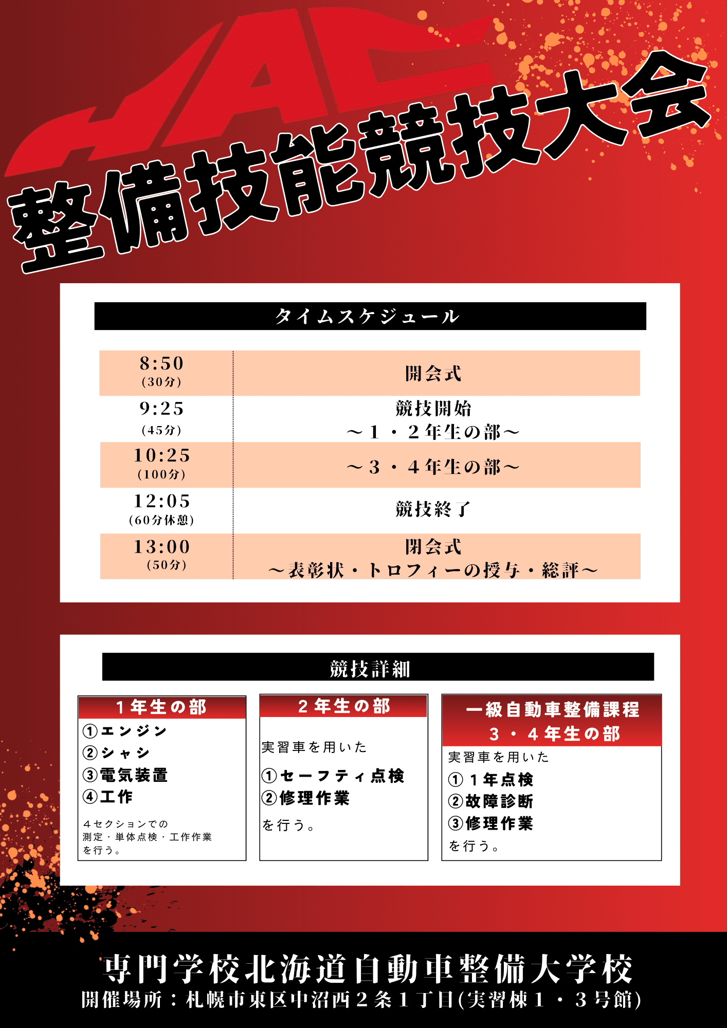 この目的のもと、本校では第ニ回となる「HAC整備技能競技大会」を開催することが決定いたしました!