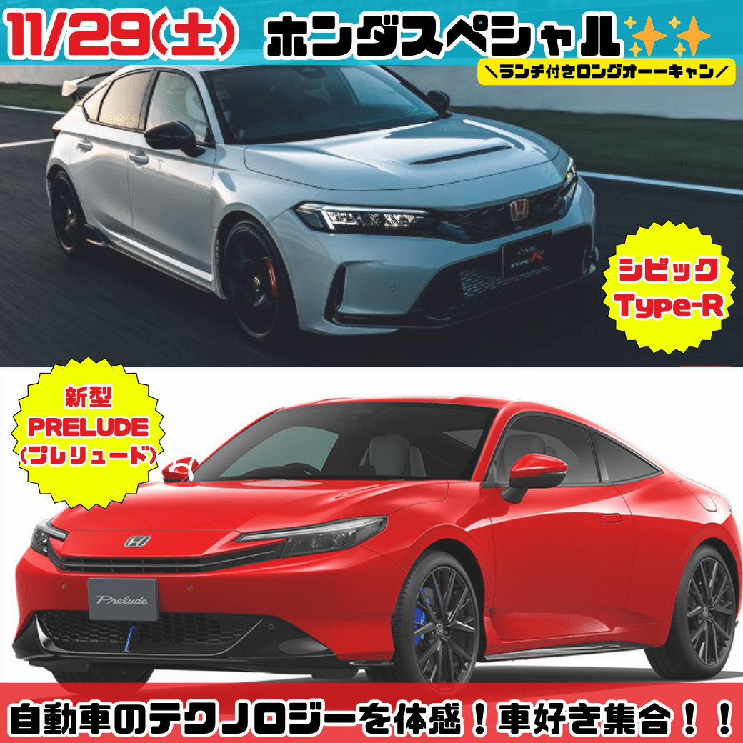人気のシビックを存分に堪能できるほか、なんと新型「PRELUDE(プレリュード)」も緊急参戦が決定しました!!!💥