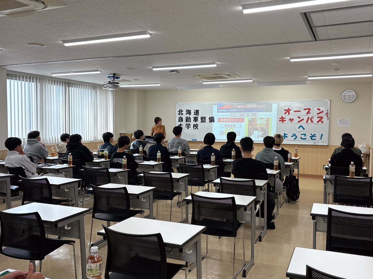 北海道最大級の実習場を持つ、専門学校北海道自動車整備大学校(通称 HAC)。