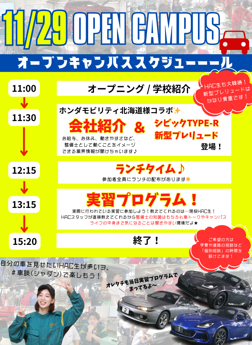 当日参加も大歓迎です!ぜひHACへお越しください🚗