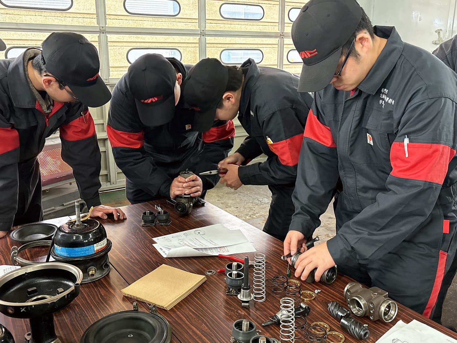 北海道日野自動車(株)様の工場におじゃまし、エアブレーキ講習を受講しました!