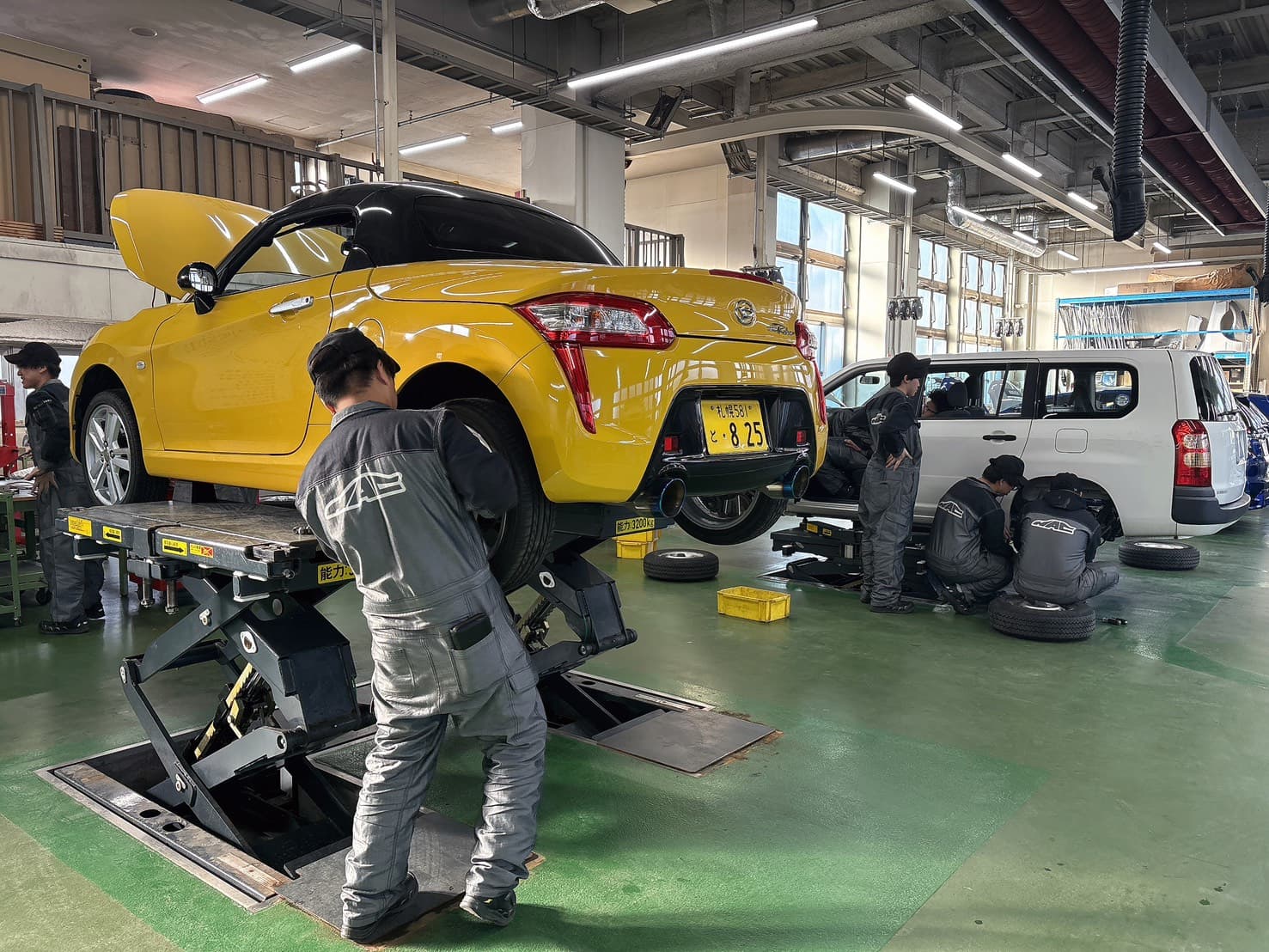北海道最大級の実習場を持つ、専門学校北海道自動車整備大学校(通称 HAC)。