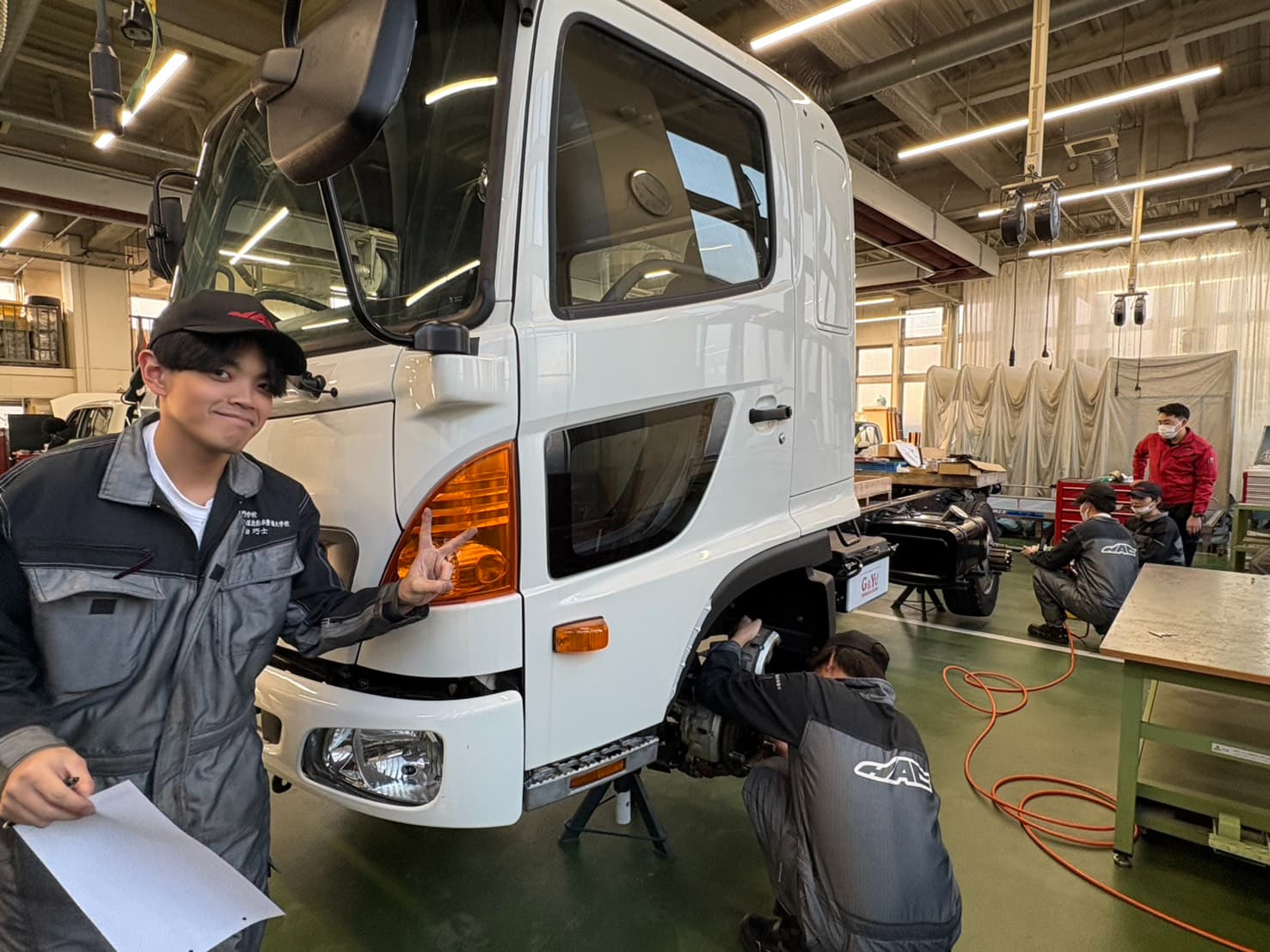 車両の検査や点検の際には先生がお客様役としてお客様対応や交渉の練習も行います!🧑🏻‍🔧