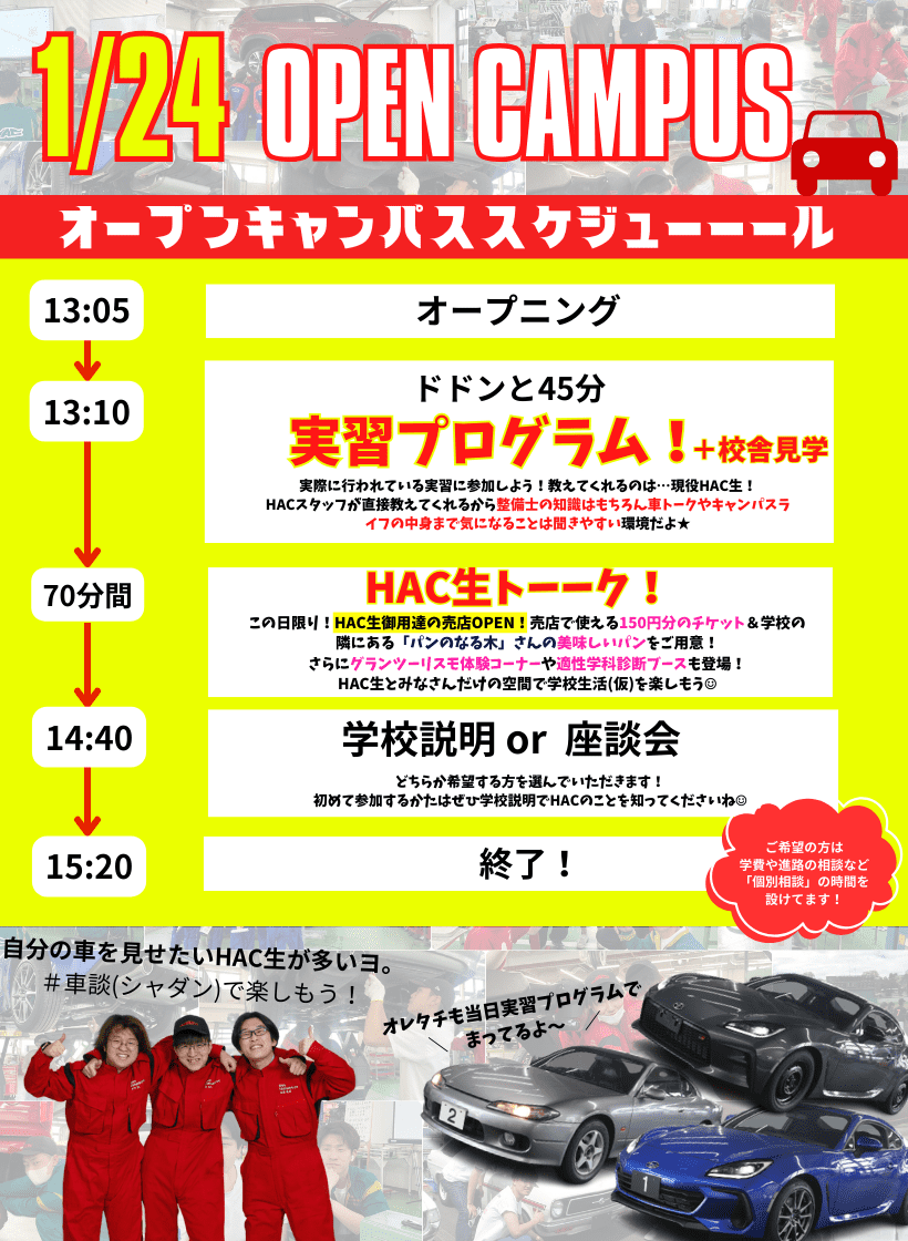 当日参加も大歓迎です!ぜひHACへお越しください🚗