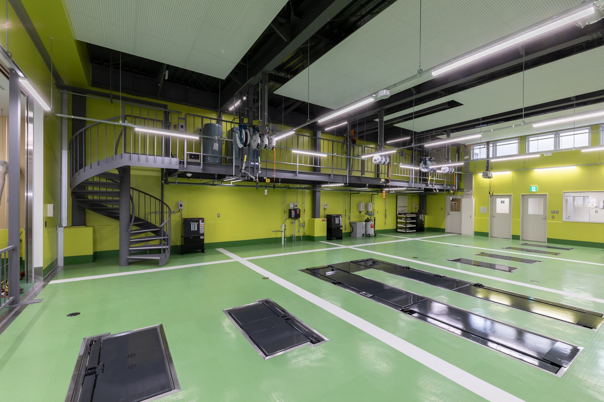 北海道最大級の実習場を持つ、専門学校北海道自動車整備大学校(通称 HAC)。