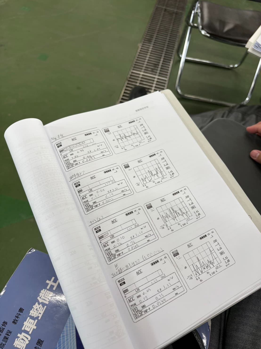 振動騒音実習では、振動騒音分析器を使用して車から発生する振動を測定・分析する授業を行ってました🫨