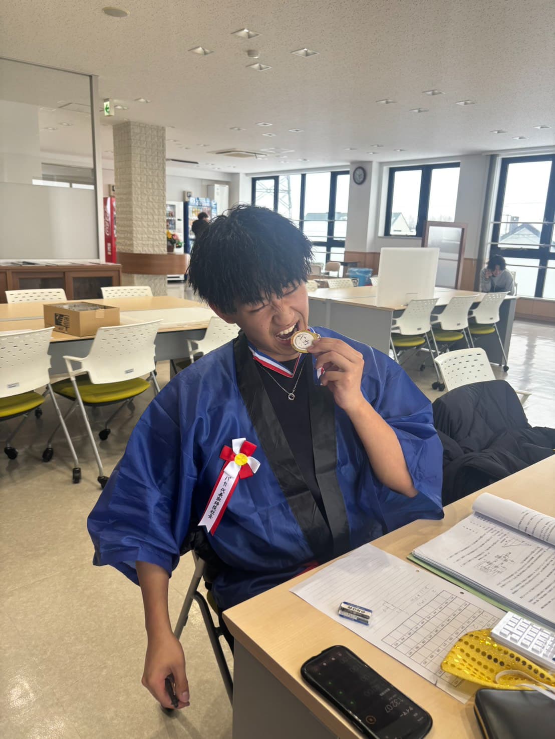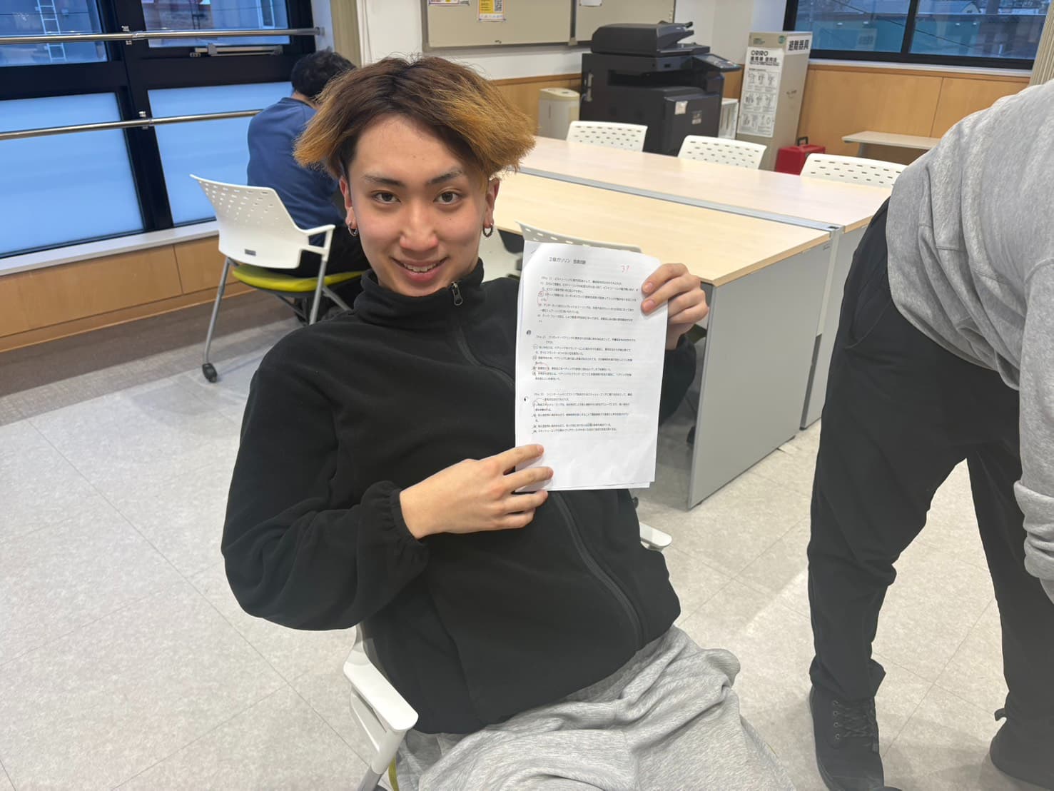 友達同士で教え合いながら頑張っています!40点満点中高得点と順調そうです💪🏻\👏✨✨/ \今野先生も様子を見に来てくれました👀/ 【4年生の様子🚗】 授業中はひたすら国試の過去問を解いています🔥 過去問で最下位を取った人は祭りグッズを着用するスタイルで頑張るチームを発見。