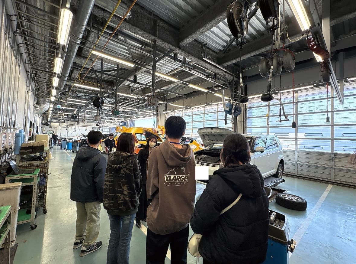 実際の整備工場でカーメカニックの方々が整備作業を行っている様子を間近で見学することができました✨
