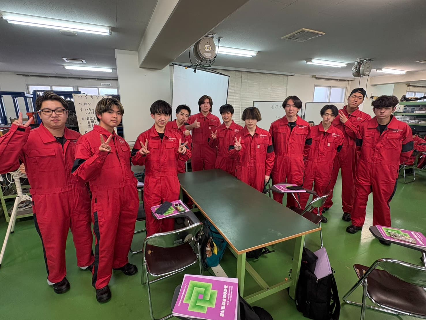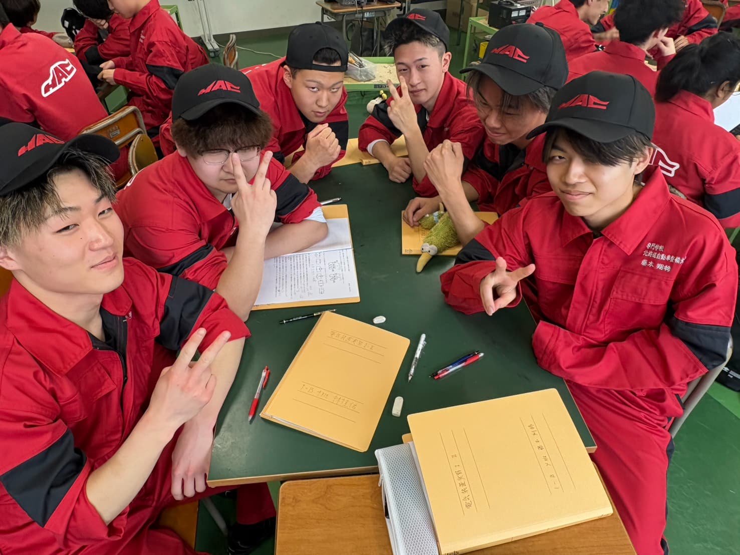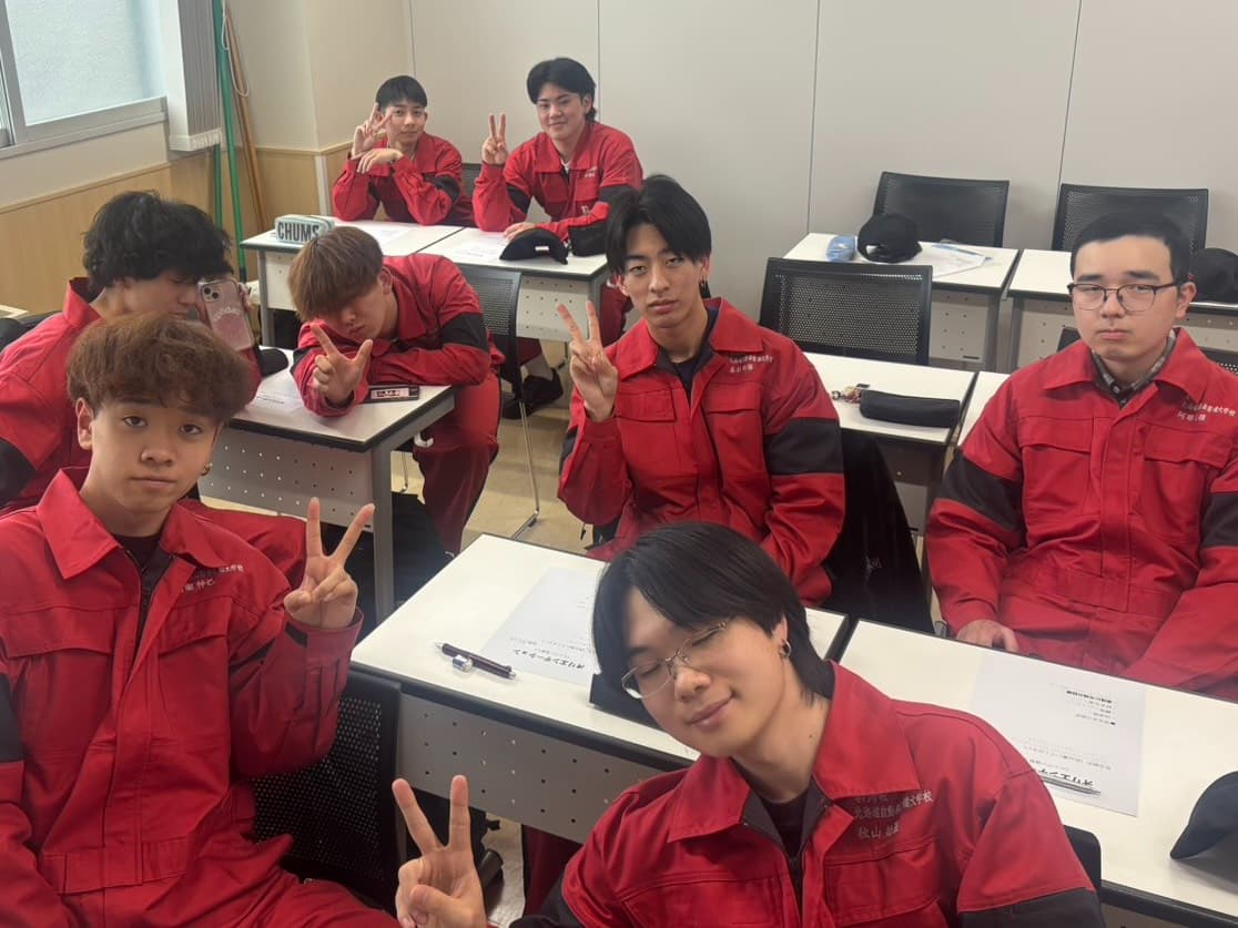 一級自動車整備学科の学生は、3年の進級時作業着が変わりますので全員この作業着とは2年間の時を共にします❕