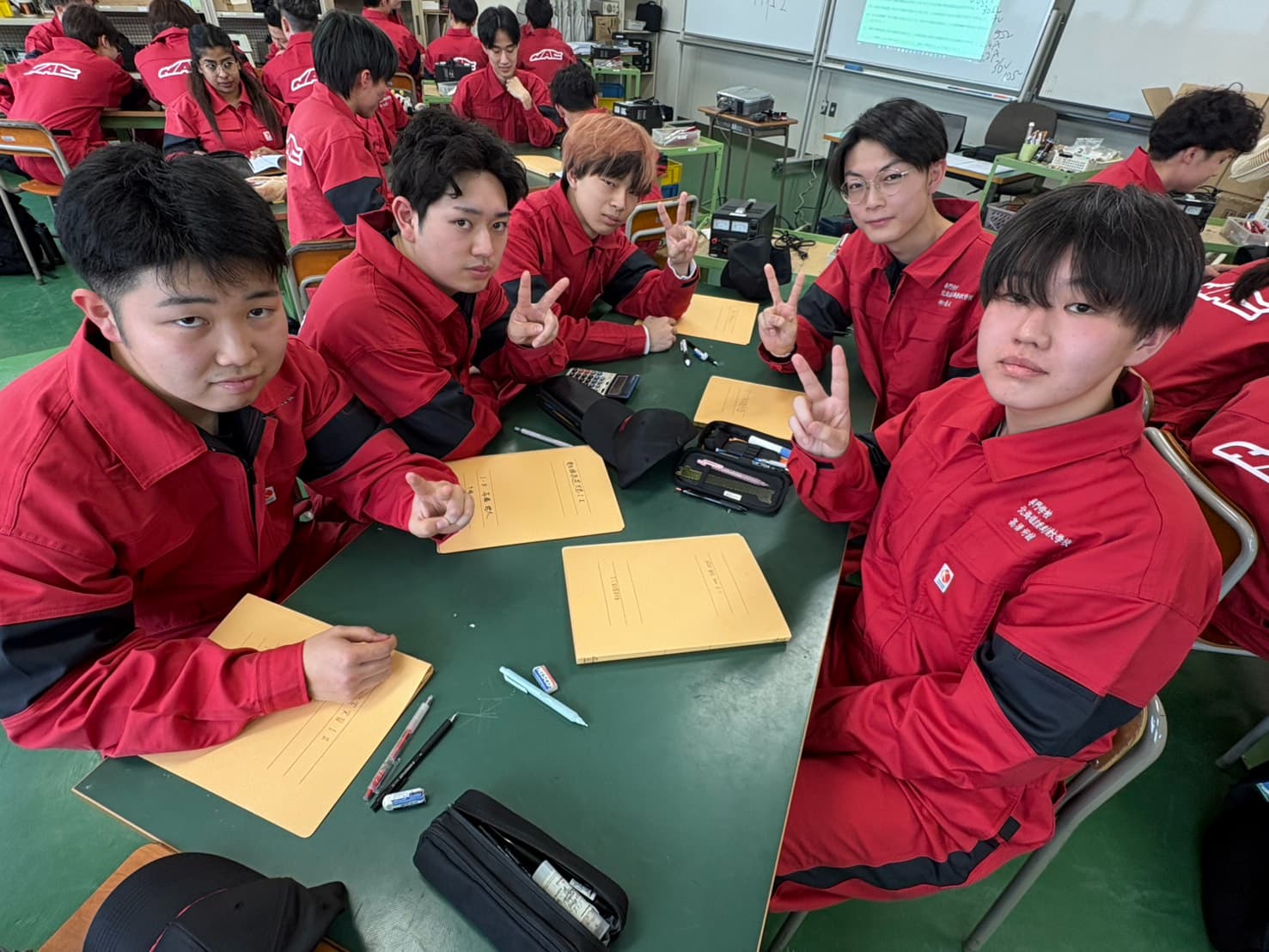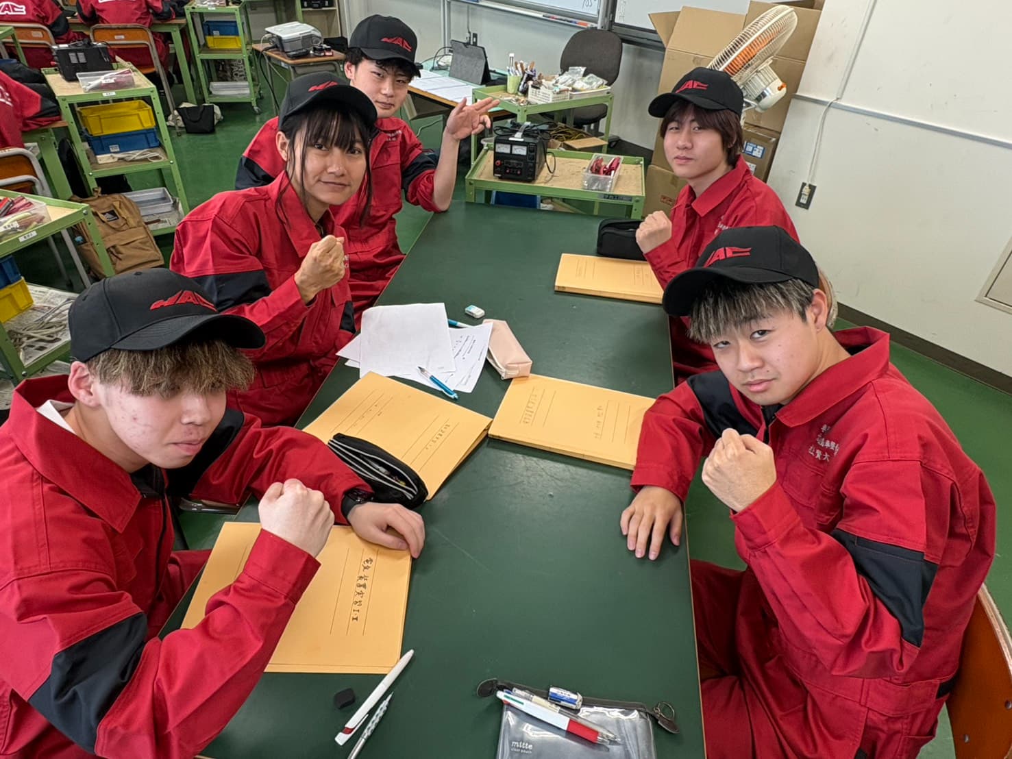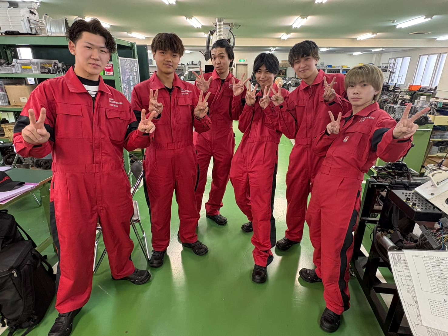 一級自動車整備学科の学生は、3年の進級時作業着が変わりますので全員この作業着とは2年間の時を共にします❕